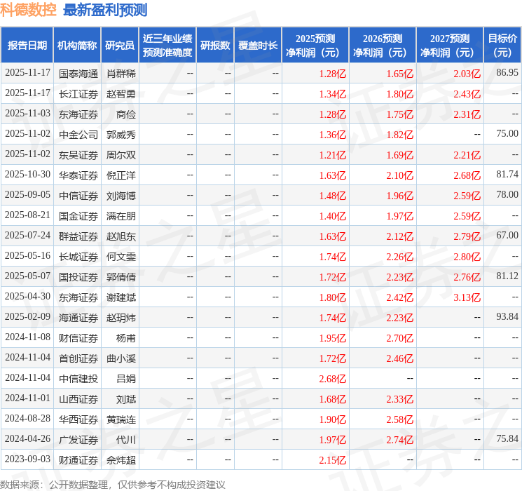 证券之星动静,2025年11月21日科德数控(688305)发布通知布告称公司于2025年11月18日进行演,浦银安盛、长江资管、远希基金、中庚基金、汇添富基金、安信基金、玉侨合基金、中财基金参取。