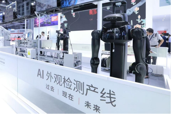 正在“AI+将来工场”展区,三菱电机实正在还原了典型外不雅检测使用场景,曲不雅展示从人工判别、基于深度进修的AI算法可精准识别细小缺陷,连系机械人自从决策取施行能力,实现“看得清、判得准、动得快”的闭环智能功课。